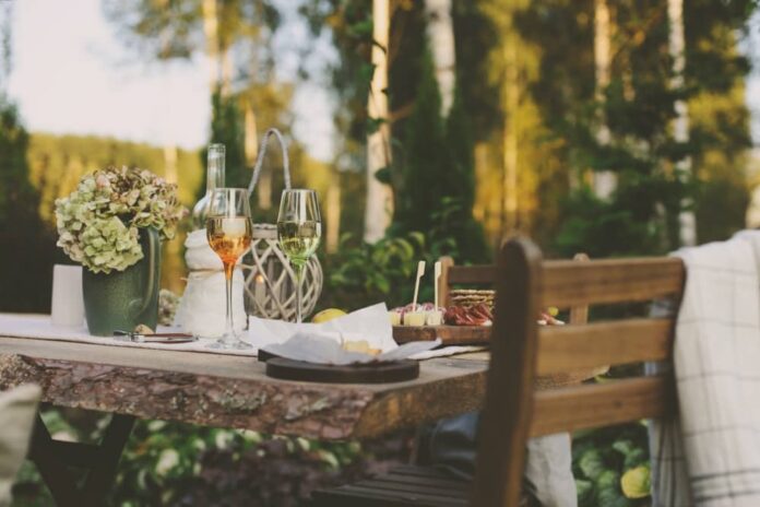 A garden party is a whimsical setting for an intimate backyard wedding. Shackets are on trend these days for casual parties. Avoid wearing stiletto-type shoes and wear flats or sandals instead. That guarantees your heels do not sink into the grass.